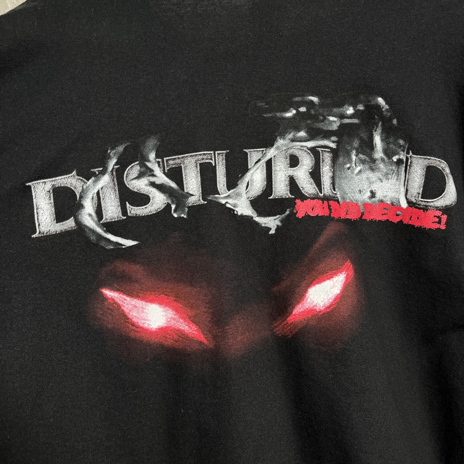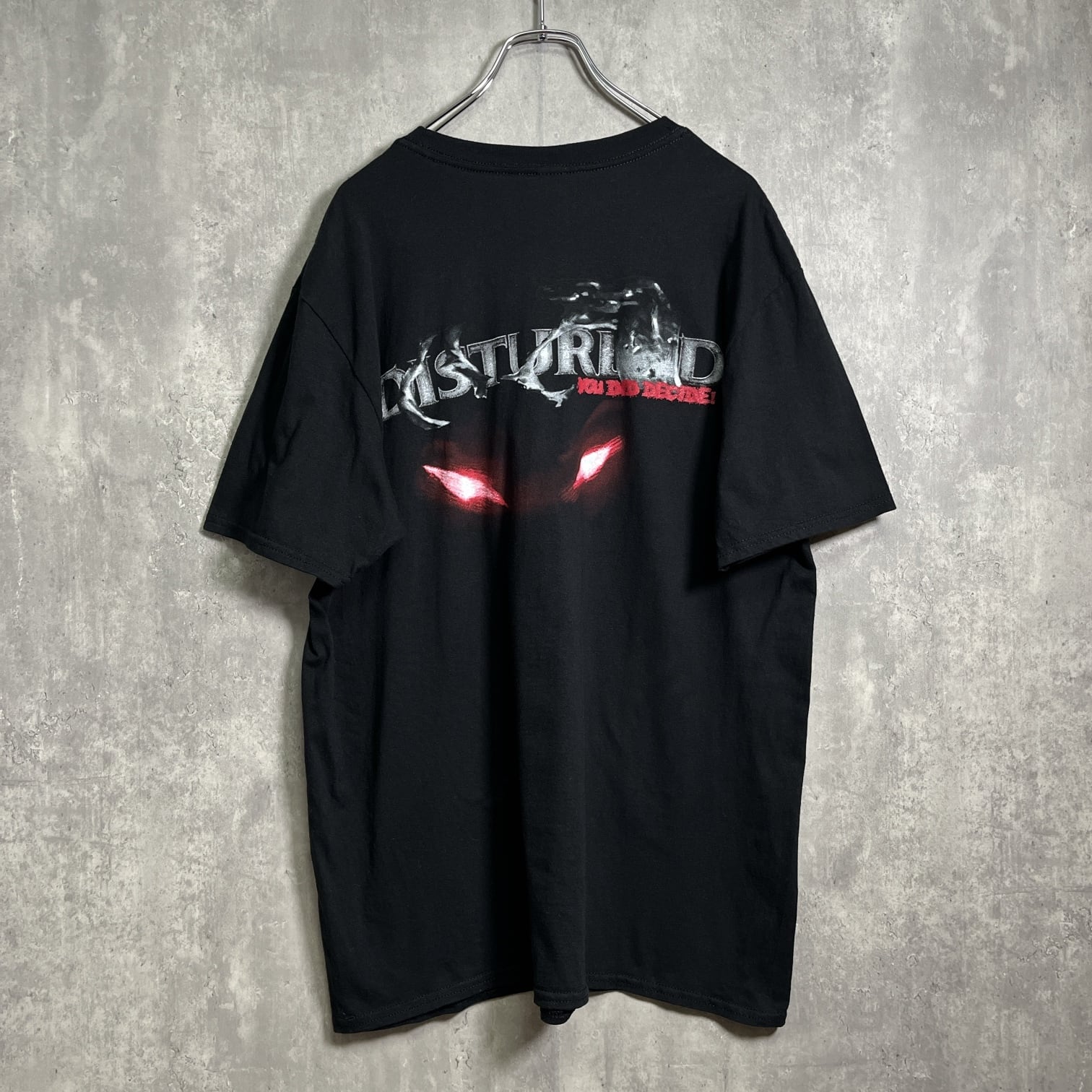 ▶︎ヘヴィメタル界で人気の高いアメリカのバンドDisturbedのプリントTシャツです。